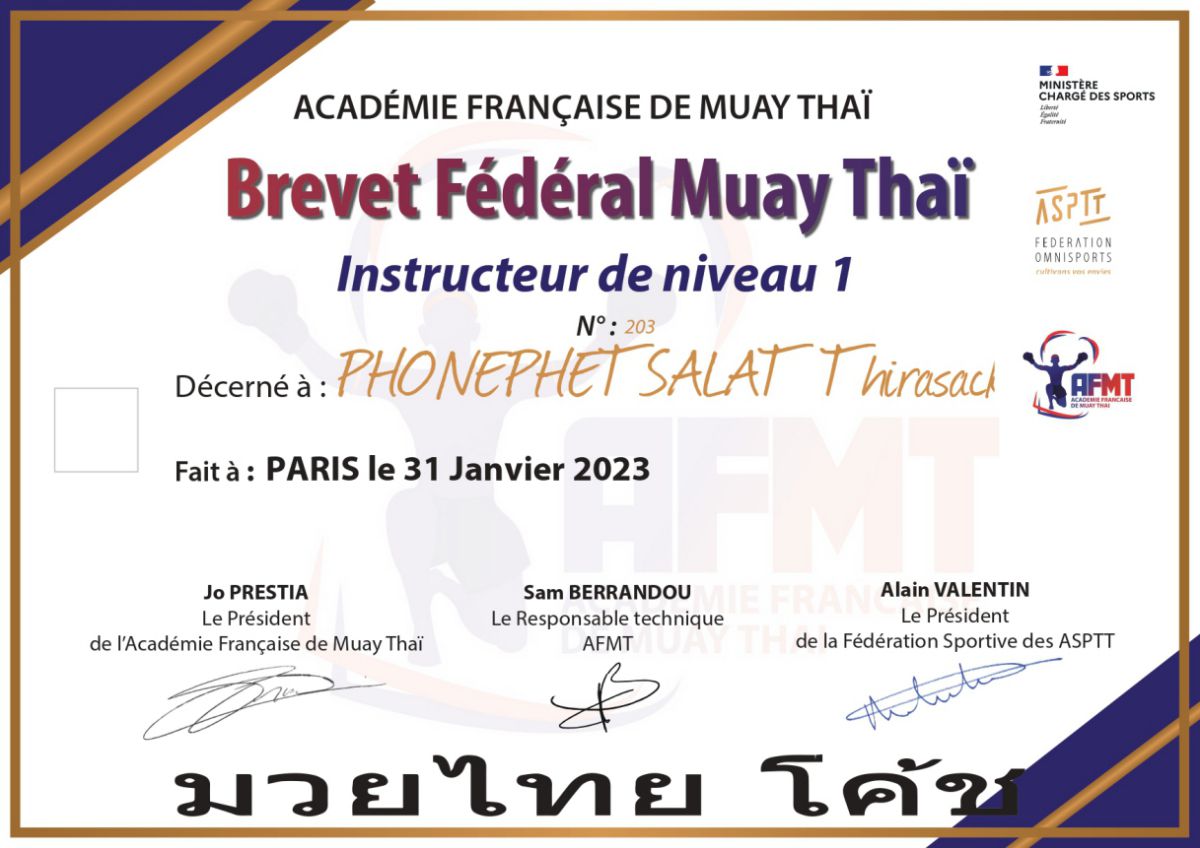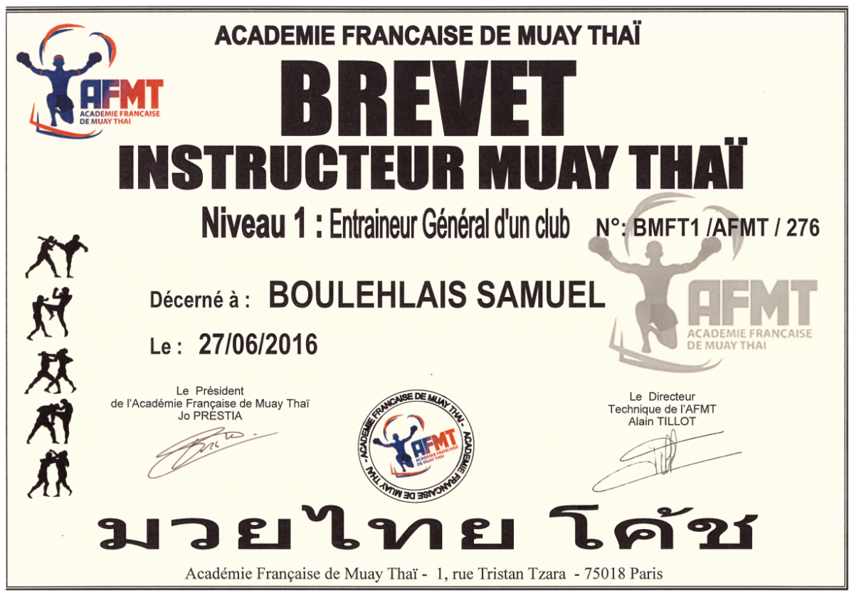 Brevet Fédéral Muay Thaï : Instructeur de niveau 1