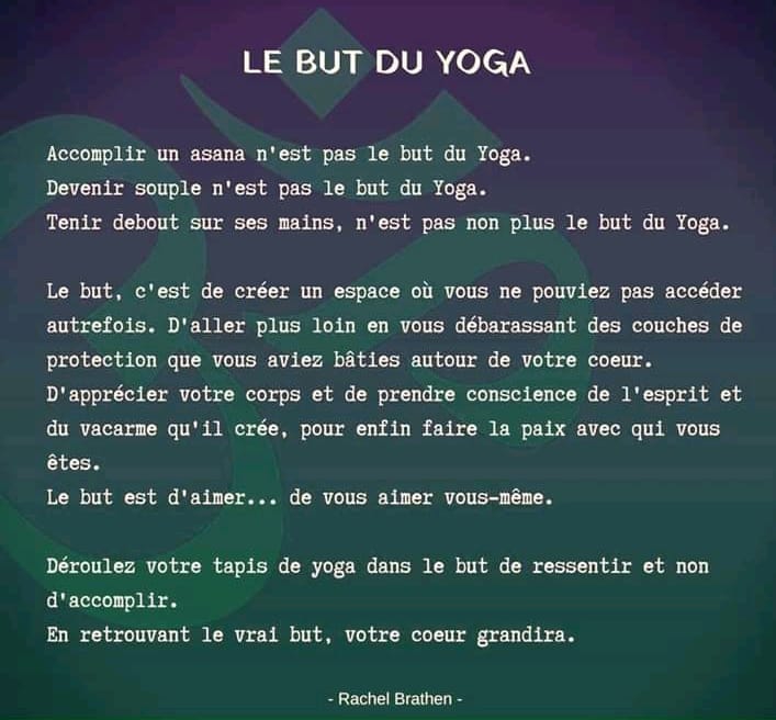 Dans mon cheminement, j'ai fait la rencontre du Yoga en la personne de Joelle PIEDRA. Suite à ses cours, l'envie de transmettre m'est venue naturellement. J'ai donc suivi la formation Yogivibe afin de pouvoir enseigner à mon tour.